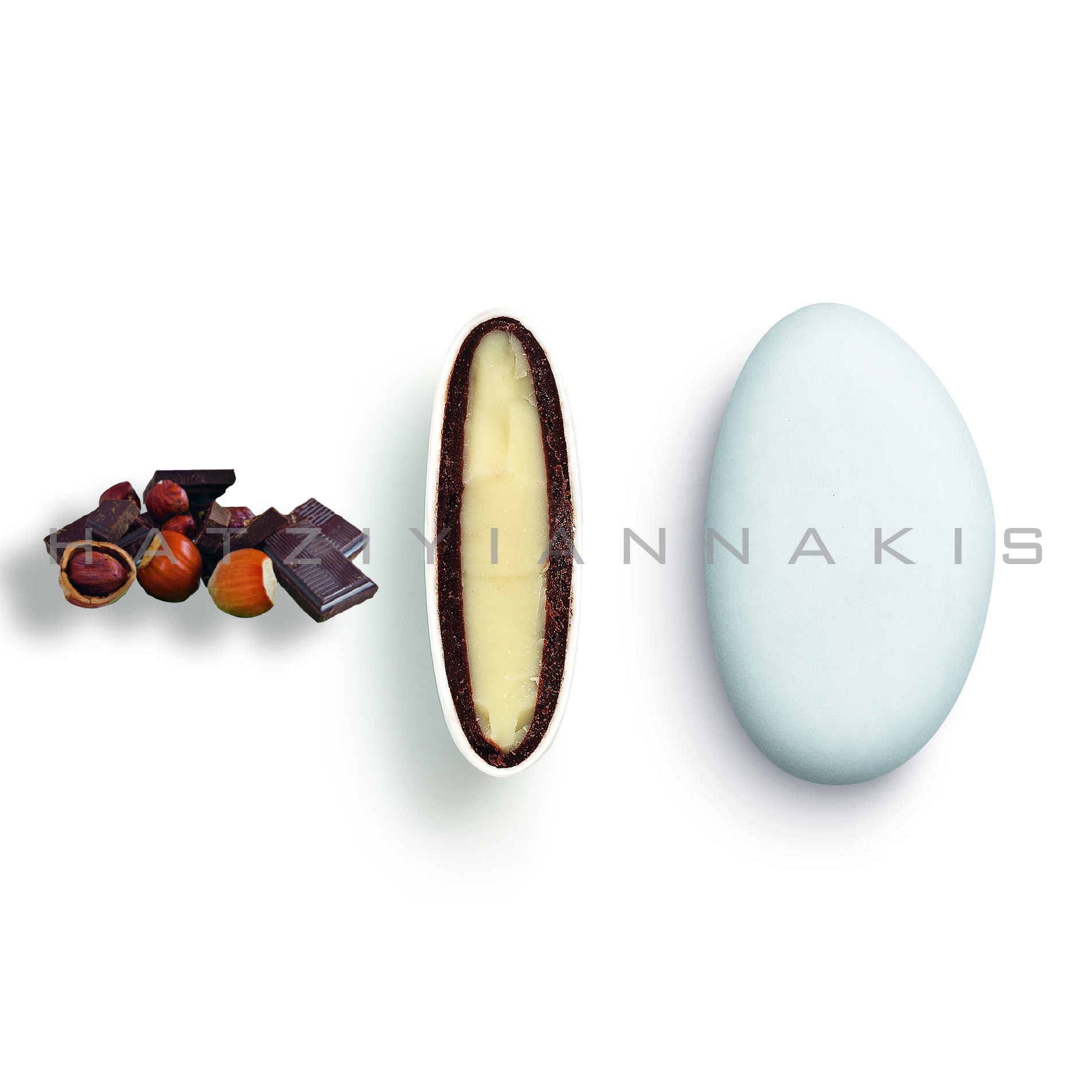 Λευκή σοκολάτα & σοκολάτα (55% κακάο) με λεπτή επικάλυψη ζάχαρης