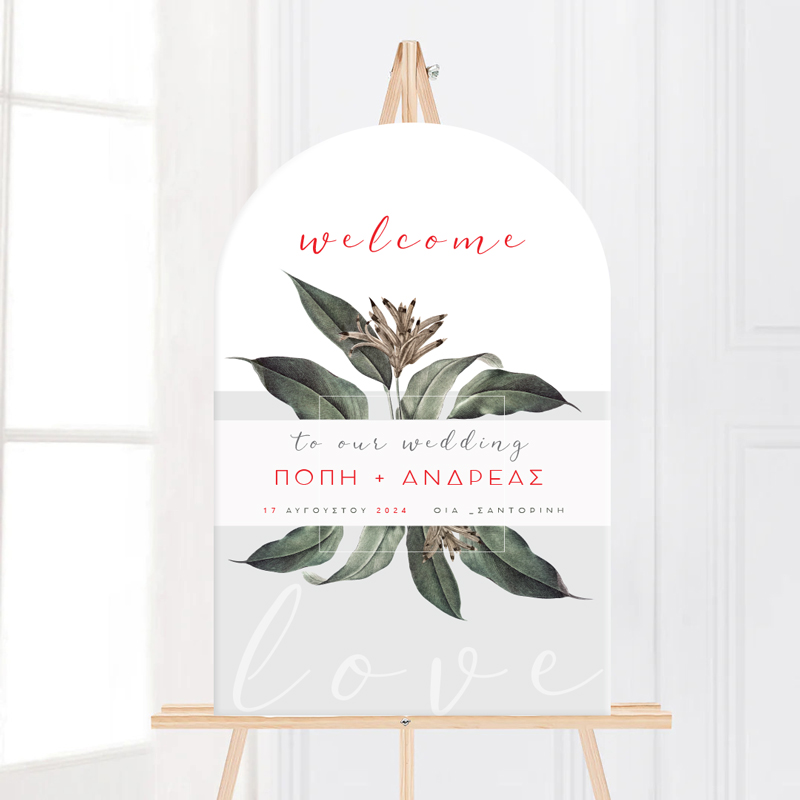 Ξύλινη διακοσμητική πινακίδα για να στολίσετε την είσοδο του γάμου σας σε Dusk Botanical σχέδιο. Ιδανική επιλογή για να καλωσορίσετε τους καλεσμένους σας την ξεχωριστή αυτή μέρα και να κλέψετε τις εντυπώσεις!