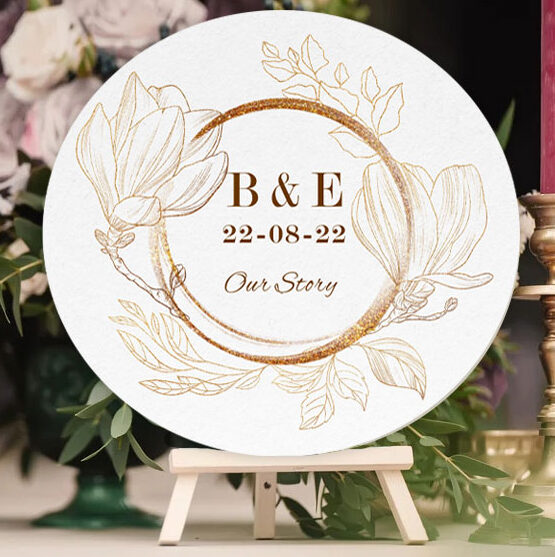 Ξύλινη Πινακίδα γάμου – Χρυσή Παιώνια