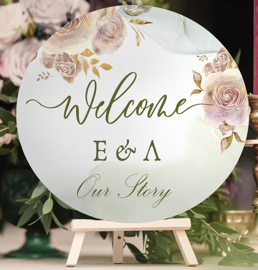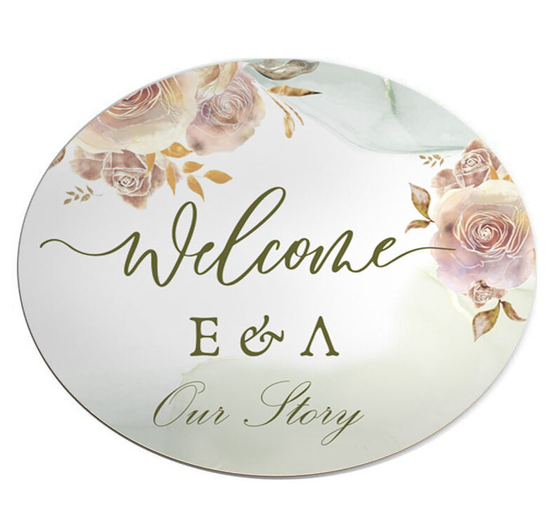 Ξύλινη Πινακίδα γάμου – Watercolor Roses